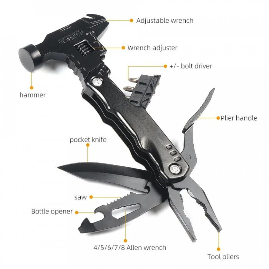 Birthday Gifts for Men: Must-have EDC multi tool, Ideal for camping, home renovation, DIY jobs and a great multitool hammer! Can cut, pry, hammer a nail,twist the screw, open fire hydrant, saw wood, strong enough to shatter the glass curtain wall, cut the rope curtain in a dangerous escape etc.
